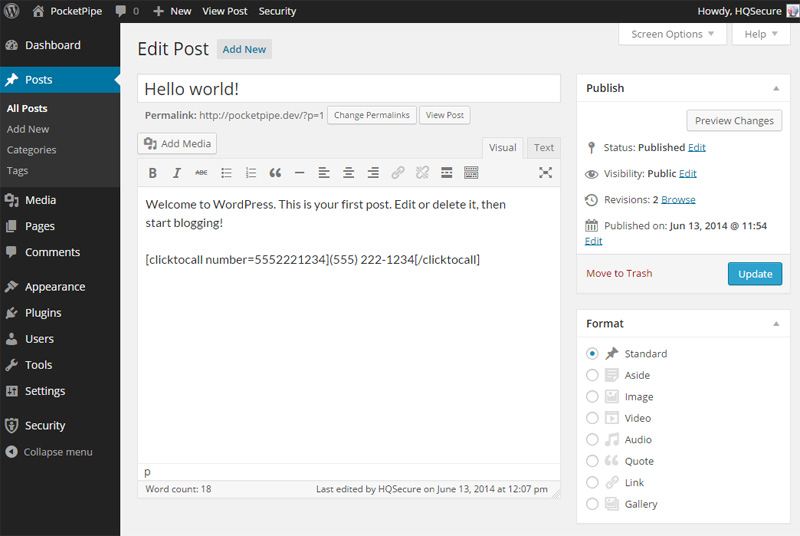 - Add The Click to Call shortcode to your WordPress posts and or pages with ease