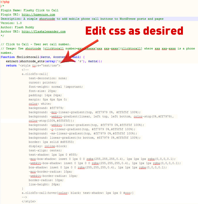 WordPress click to call plugin shortcode to add call to action buttons; mobile phone call buttons to WordPress posts and pages, allowing users to click the button and invoke any native phone call applications; Skype, mobile phones, tablets with call apps etc. This tool is great to easily add a handsomely style click to call button on any WordPress site.