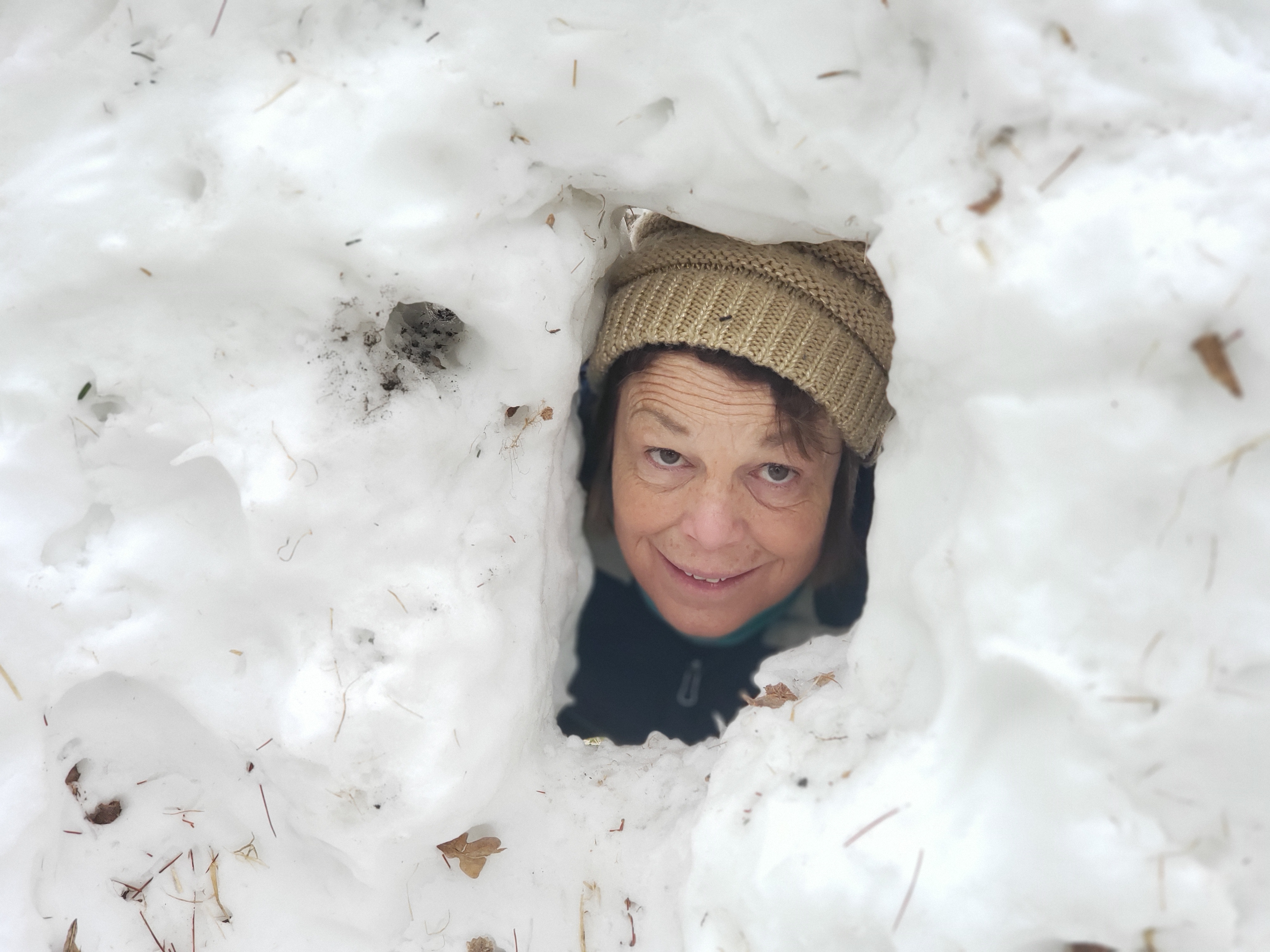 Jan Baby playing in a found snow fort.